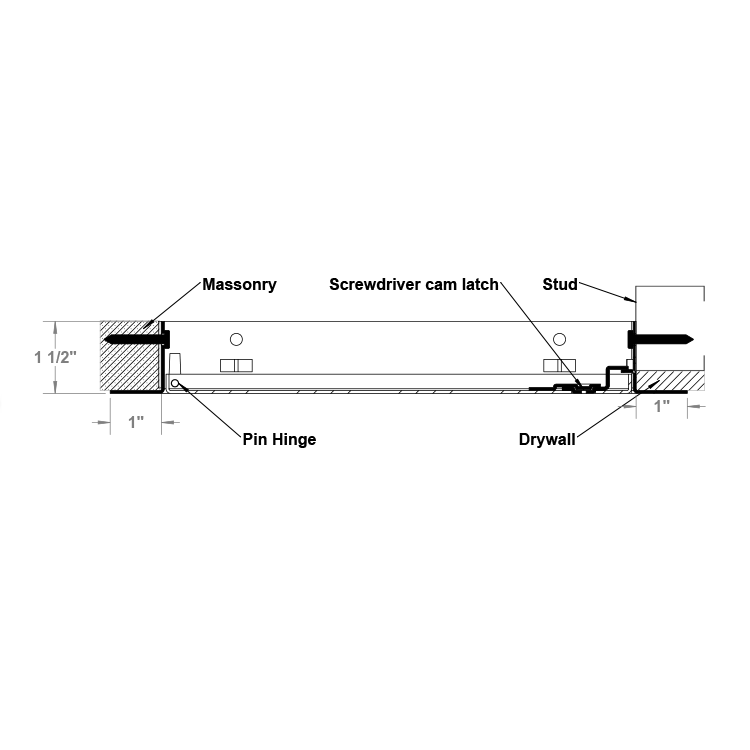 Designed for installation on non-rated walls and ceilings. This model, made of stainless steel 304 #4, is equipped with a flange that is not exposed once the drywall compound is applied.