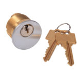 Mortise slam latch accepts cylinders of 1 5/32" in diameter. Cylinder keyed alike.