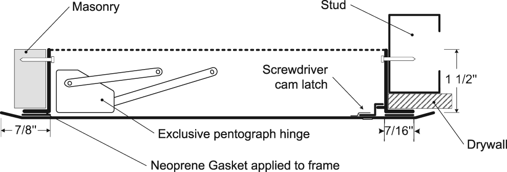 Designed for quick and easy installation on non-rated walls and ceilings. This model, made of stainless steel, is equipped with a piano hinge and a gasket to reduce airflow between the panel and the frame.