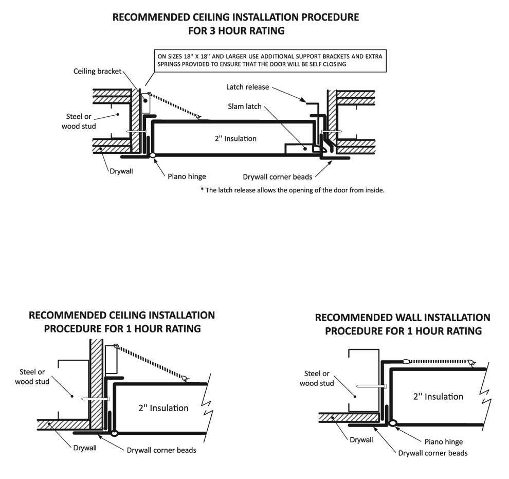 The fire-rated insulated access door can be installed on fire-rated walls and ceilings.